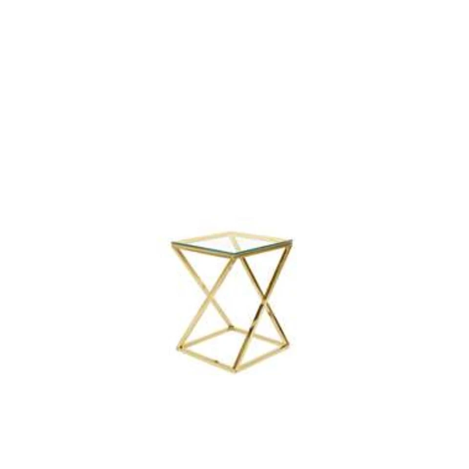 Elegante bijzettafel met een helder glazen blad. Deze bijzettafel vertegenwoordigt een perfecte combinatie van glamour en minimalistische invloeden. Het tijdloze ontwerp maakt het perfect voor zowel minimalistische, industriële als meer traditionele interieurs. Het stuk bestaat uit een vierkant, gehard glazen blad en een robuuste metalen voet. Het werkt geweldig als nachtkastje of bijzettafel en geeft een stijlvol accent in elke woonkamer, slaapkamer of hal.