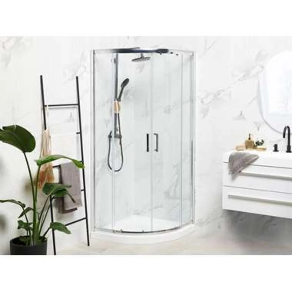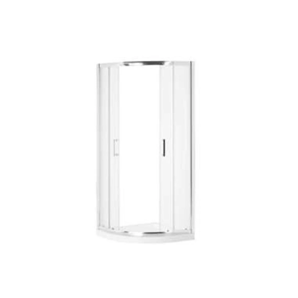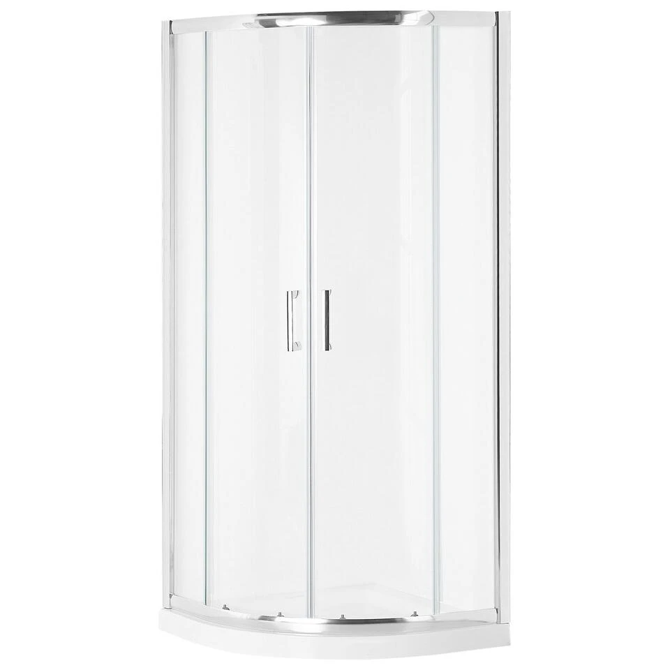 Halfronde douchecabine met dubbele schuifdeur. Zorg goed voor je badkamer en rust deze uit met deze halfronde douchecabine. De dubbele schuifdeur zorgt ervoor dat er geen water lekt op de tegels in je badkamer. Dit stuk is gemaakt van hoogwaardig gehard glas en gaat jarenlang mee, zelfs zonder dagelijks onderhoud. Het zilverkleurige, aluminium frame, beschermt het product ook tegen beschadigingen en benadrukt bovendien moderne design.