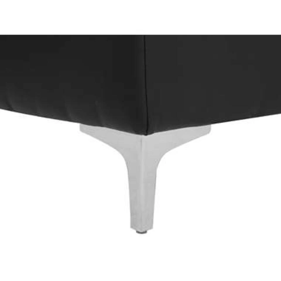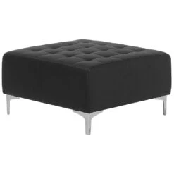 Veelzijdige ottomaan in retro-stijl in zwart kunstleer. Deze moderne voetenbank is de perfecte aanvulling op een bankstel. Volledig gestoffeerd met hoogwaardige stof en elegante tufting, past hij bij elk interieur. Combineer het met andere stukken uit de collectie om een zitgroep te creëren die bij je past. Het geheel staat stabiel dankzij de metalen poten.