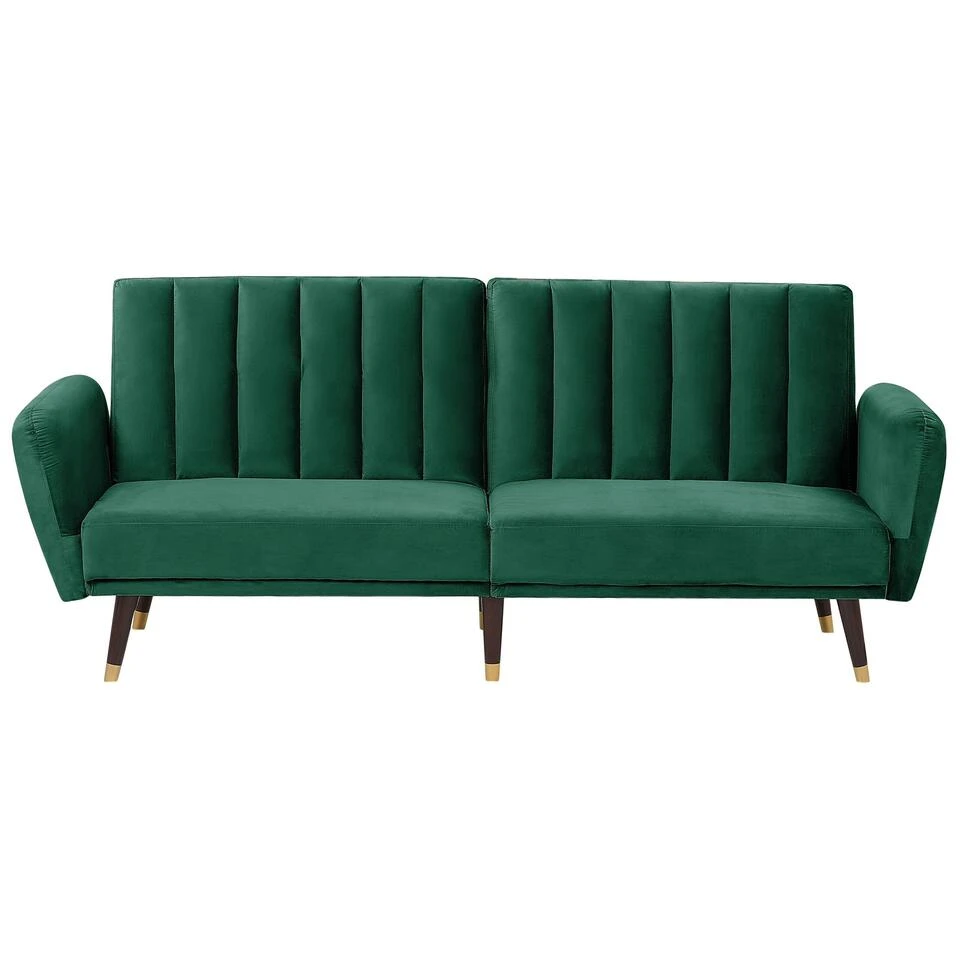 Prachtige, comfortabele slaapbank. . Maak het gezellig en geniet thuis van de kostbare momenten met deze charmante slaapbank. Bekleed met hoogwaardig fluweel in levendige kleuren, introduceert het een chique, glamoureuze sfeer en past het goed bij interieurs in elk interieur. Dankzij de verstelbare rugleuning is het gemakkelijk om te bouwen tot een bed, waardoor het perfect is voor als je een extra slaapplaats nodig hebt voor je gasten of als je een studio hebt en overdag wat ruimte wilt besparen. Gebaseerd op een stevig frame van eucalyptushout en stevige rubberen houten poten, biedt hij plaats aan maximaal 3 personen en gaat hij nog vele jaren mee.