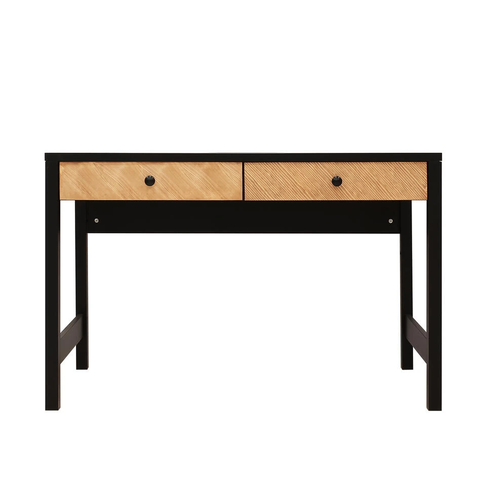 Bureau Job in een stoere combinatie van mat zwart en houtfineer is voorzien van twee ruime lades. Natuurlijk kan er huiswerk aan gemaakt worden, maar knutselen kan ook! De twee laden bieden genoeg opbergruimte voor alle spulletjes. Combineer dit bureau met de andere meubelen van de serie Job. Aangezien het een natuurproduct betreft kan de houtstructuur per meubel van de serie Job verschillen.