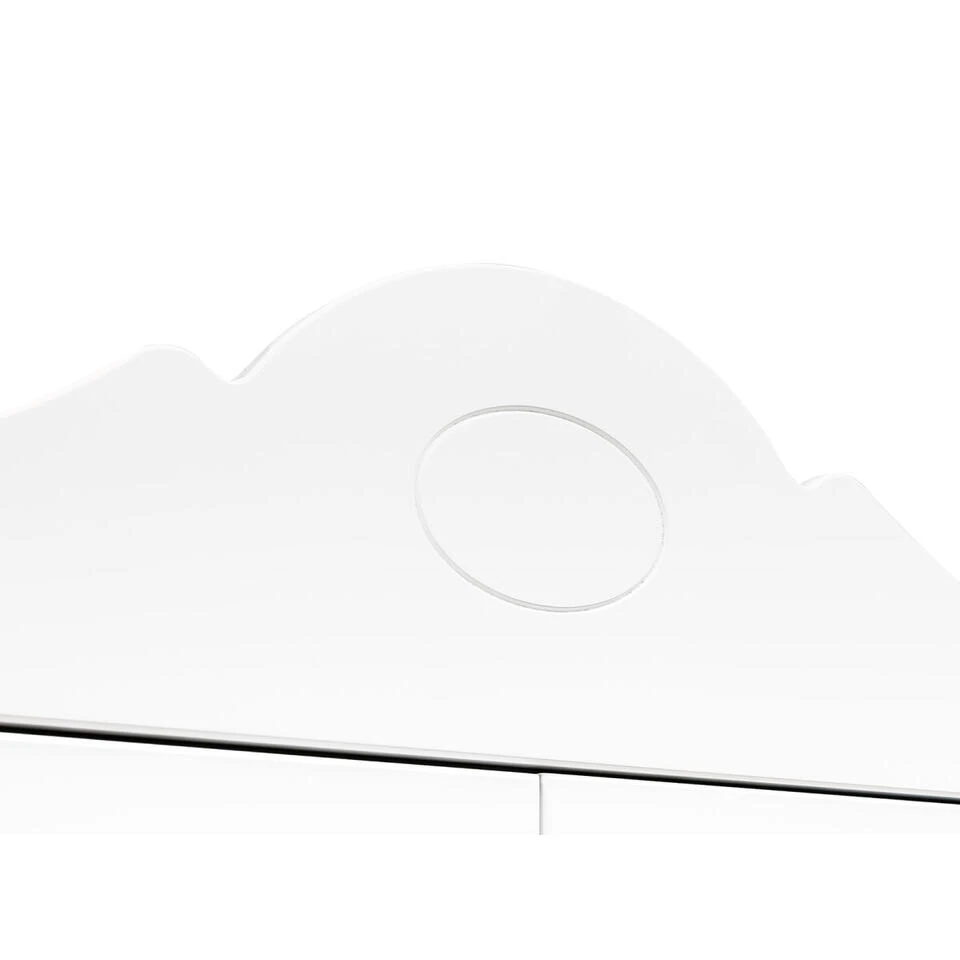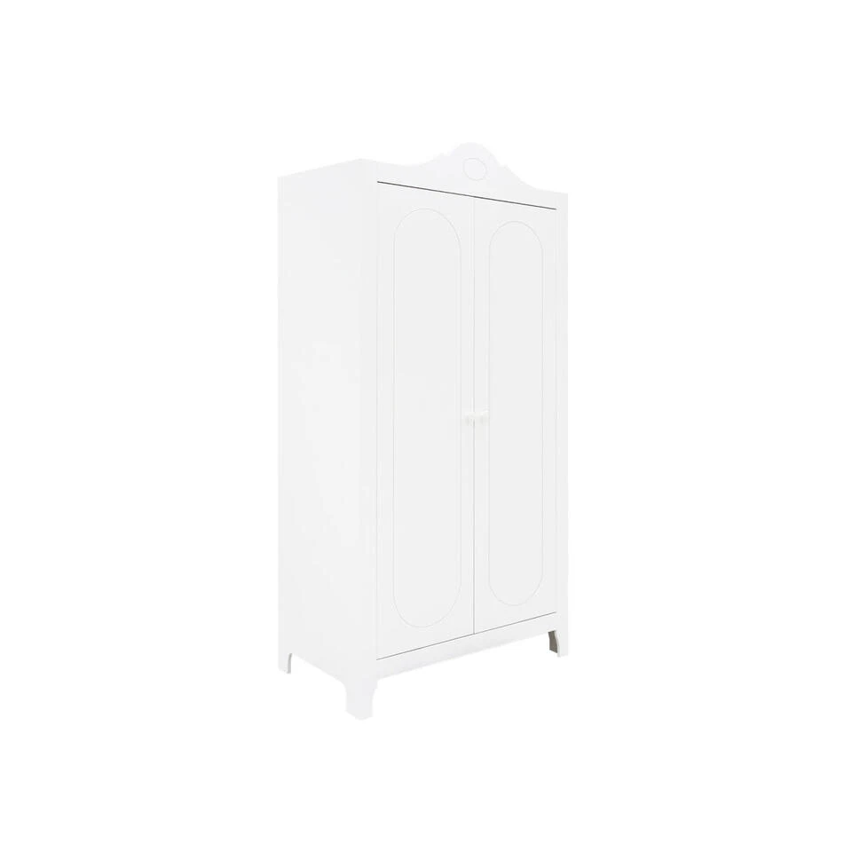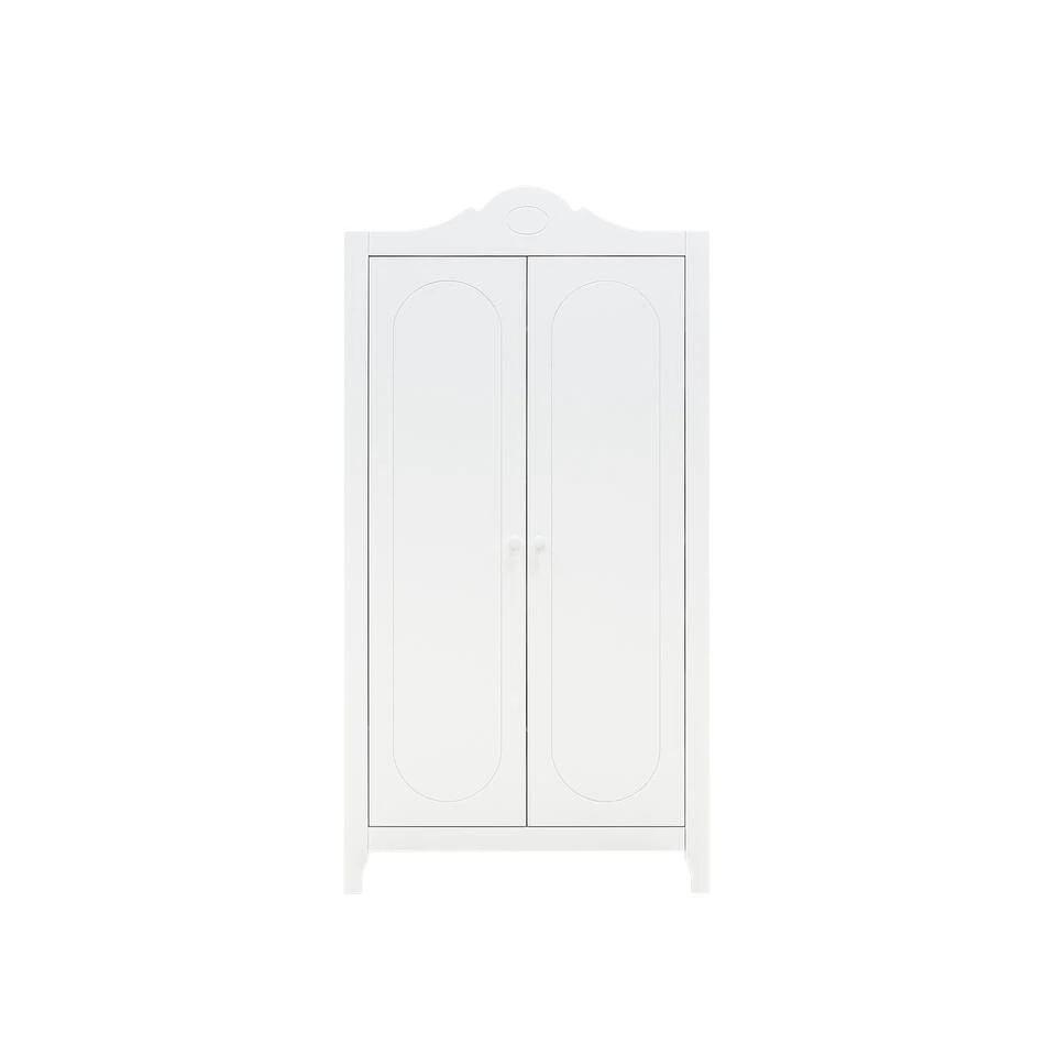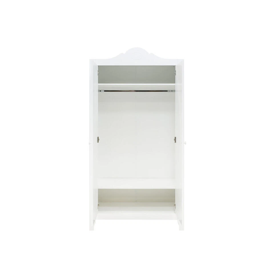 Kledingkast Evi heeft een romantische, landelijke uitstraling door de sierlijke vormen en uitgefreesde groeven. De deuren zijn uit zwaar MDF vervaardigd en voorzien van gefreesde, afgeronde groeven. Door de softclose scharnieren sluiten de deuren zachtjes. De gebruikte lak is watergedragen en daardoor veilig voor kinderen en milieuvriendelijk. Het hout van deze kast is afkomstig uit Europese bossen. Het interieur van deze kast bevat twee ruime in hoogte verstelbare legplanken en een in hoogte verstelbare hangroede. Het is daardoor mogelijk om de kast naar eigen wens in te delen. Combineer deze garderobekast Evi met de andere meubels van deze serie om een romantische, landelijke kamer te creëren.