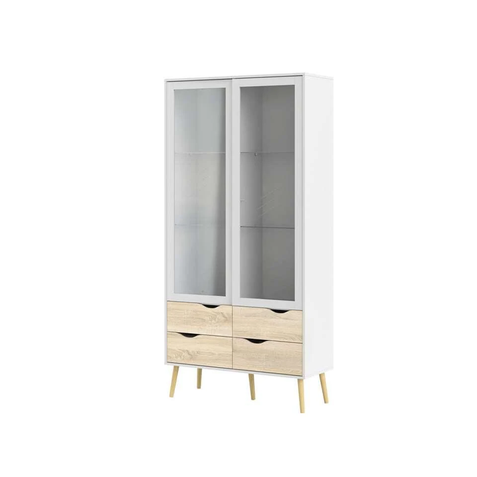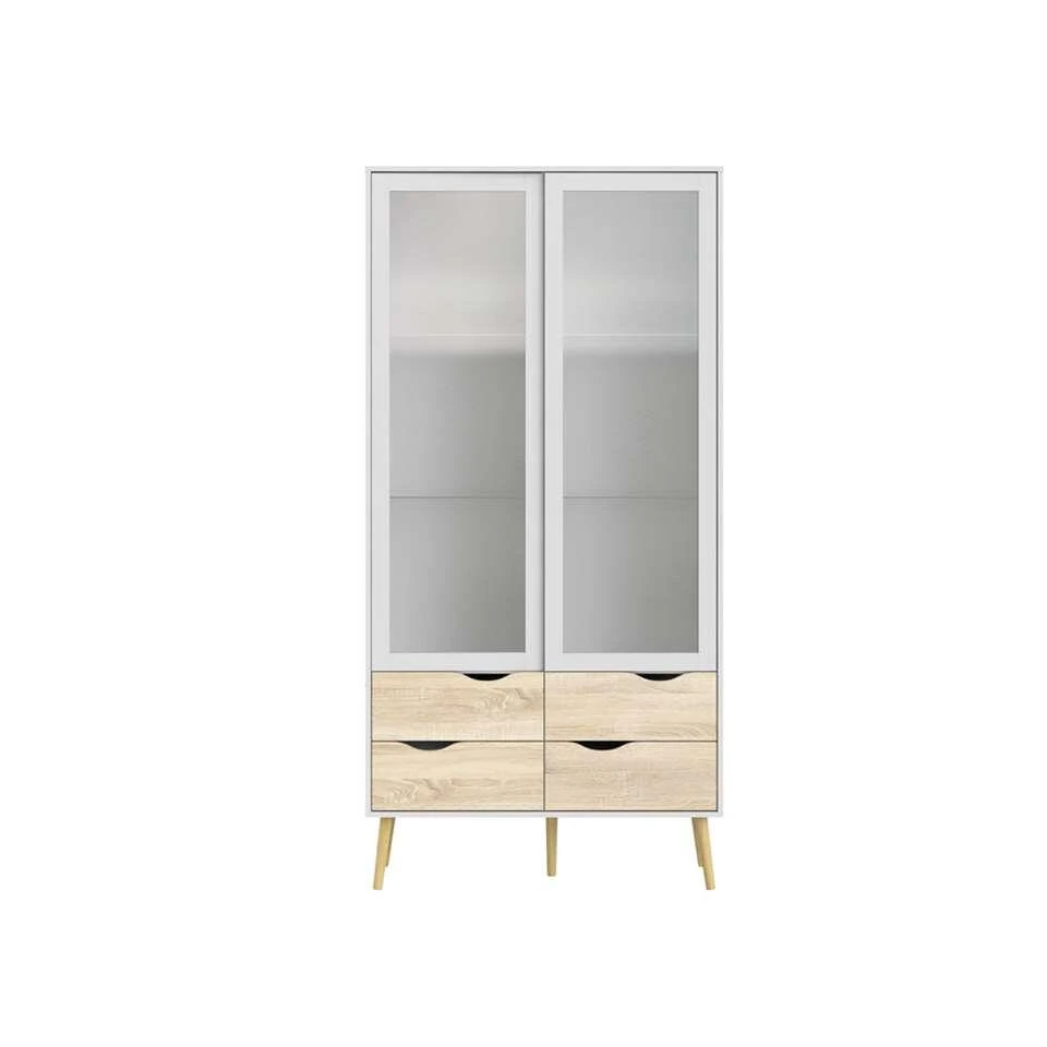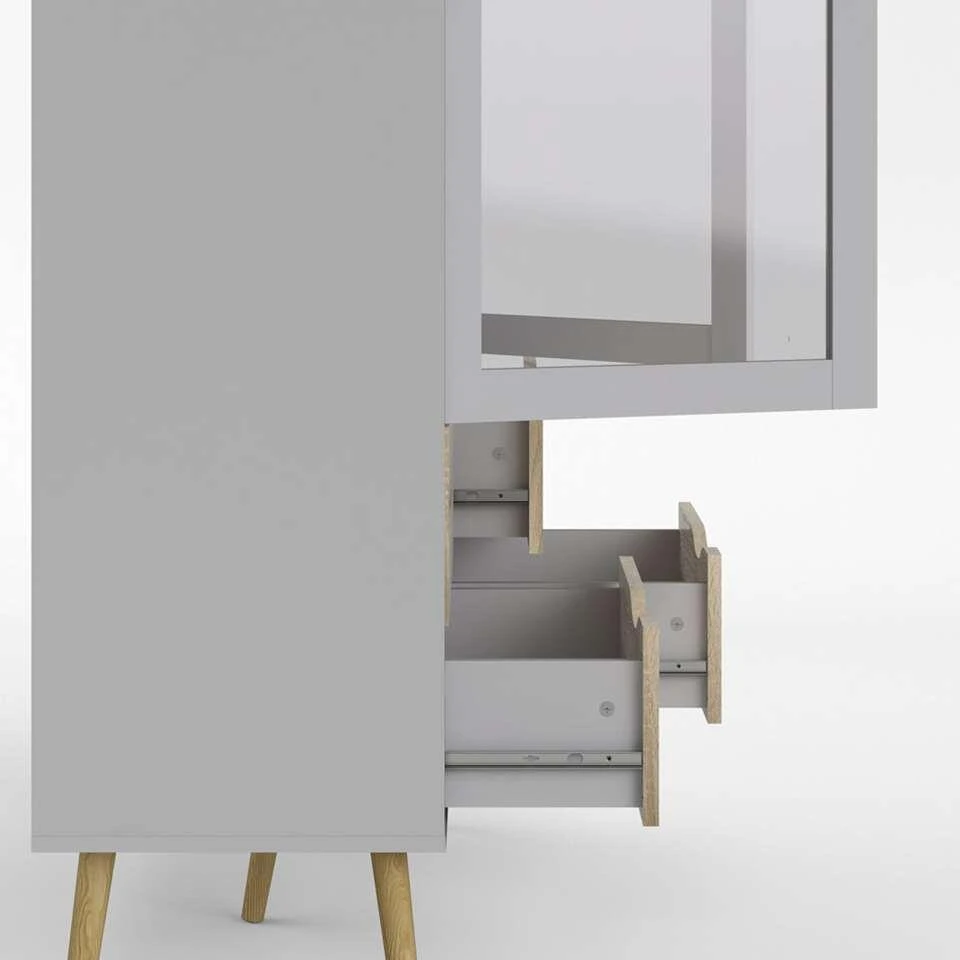 Buffetkast Delta is een moderne kast voor in de woonkamer. De Delta heeft een strakke vormgeving en is wit met eiken van kleur. Deze ruime en praktische kast staat goed in elk modern interieur. Berg alles netjes op in buffertkast Delta. Achter de twee deurtjes is ruimte voor bijvoorbeeld glazen of servies. Onderin vind je vier ruime lades. Dit praktische en stijlvolle meubel is gemaakt van spaanplaat.