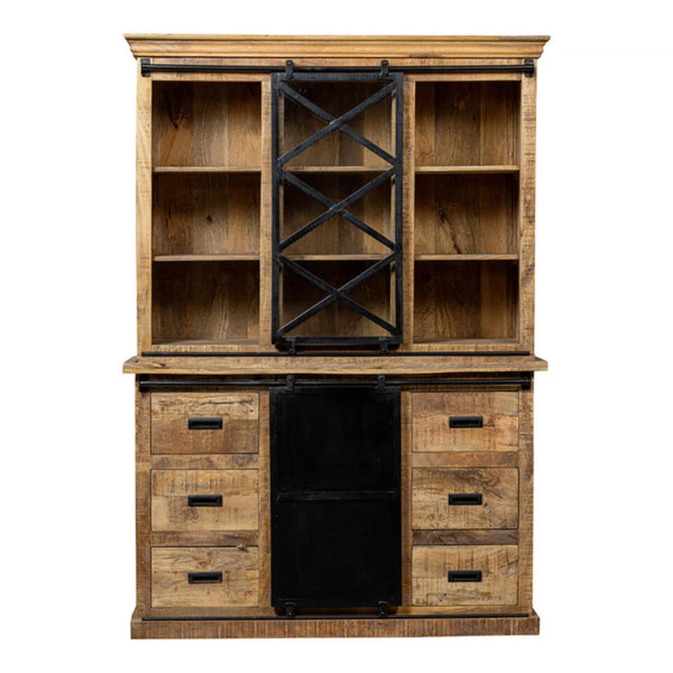 Over het massieve mangohout worden meerdere lagen houtolie en een blanke, natuurlijke bijenwas aangebracht om het hout te beschermen tegen vocht, vuiligheid en kringen. Het frame van de glazen schuifdeur, de onderste schuifdeur en de handgrepen zijn allemaal gemaakt van zwart gepoedercoat metaal.