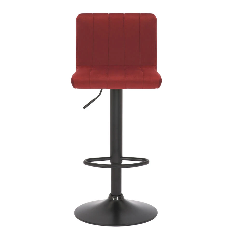 Deze barkruk geeft elke ruimte een exclusieve uitstraling en overtuigt niet alleen door zijn uitstekende zit eigenschappen, maar ook door zijn moderne design. De zitting is bekleed met een gemakkelijk te onderhouden fluwelen hoes. Met behulp van de gasveer kan dit model traploos op de gewenste hoogte worden ingesteld, zodat het ideaal geschikt is voor elke aanrechthoogte. De voetsteun, die voor een zeer goed zitcomfort zorgt, kan synchroon met de hoogte van de zitting worden versteld. De zitting kan samen met de voetsteun 360° gedraaid worden. De trompetvoet van zwart metaal heeft vloerbeschermers aan de onderkant om te voorkomen dat er krassen op oppervlakken komen.