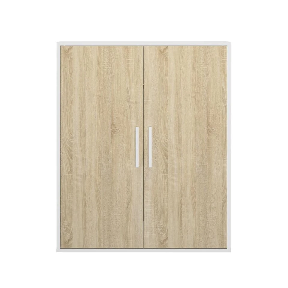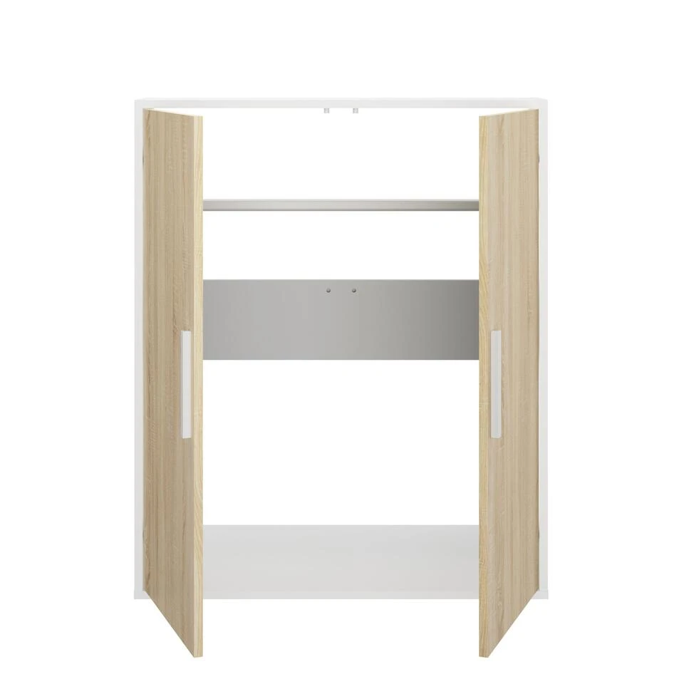 Het tweekleurige ontwerp van deze kast, met zijn Sonoma eiken en witte afwerking, geeft het een moderne en tijdloze uitstraling die perfect past bij alle decoratiestijlen. De metalen handgrepen voegen een vleugje verfijning toe aan het geheel.
