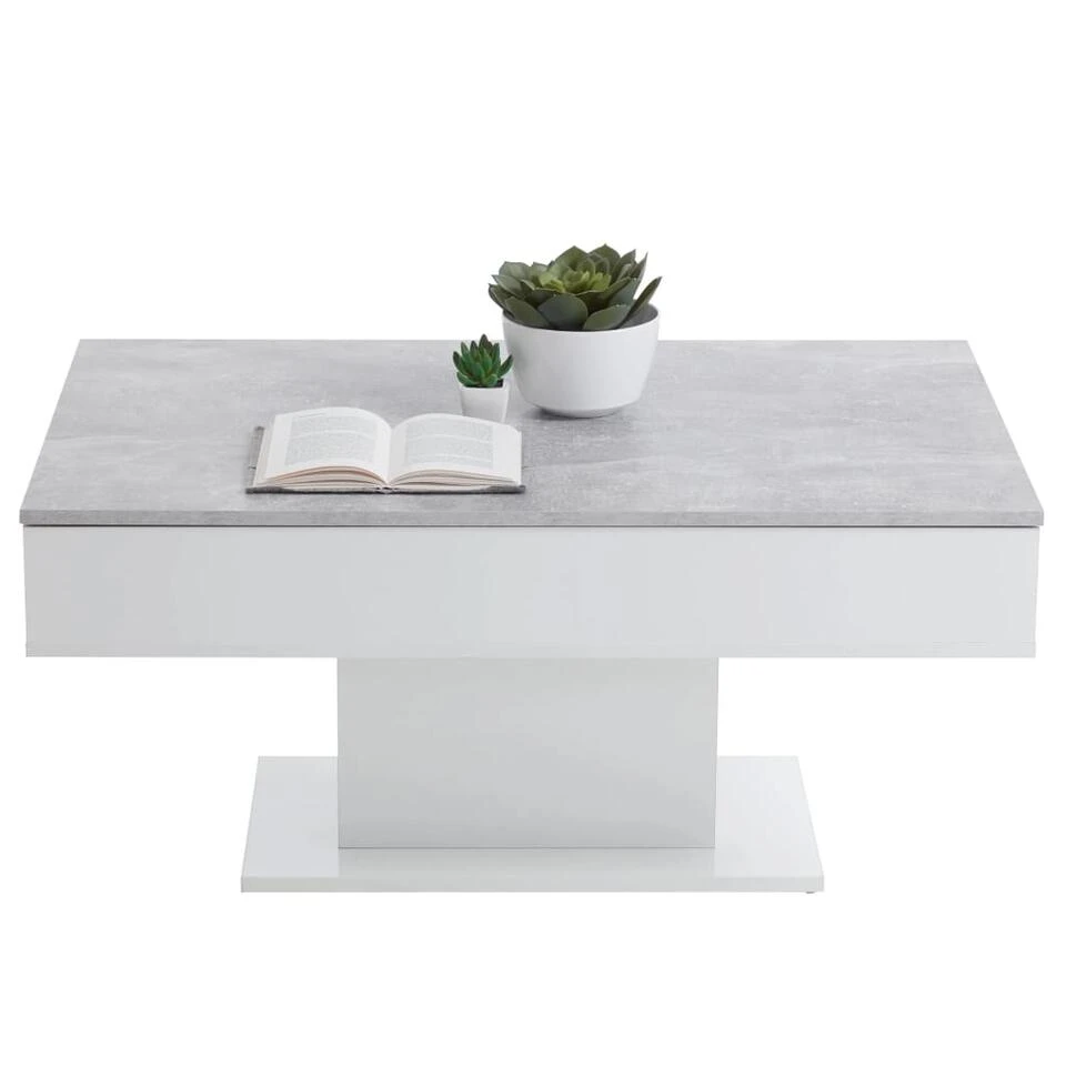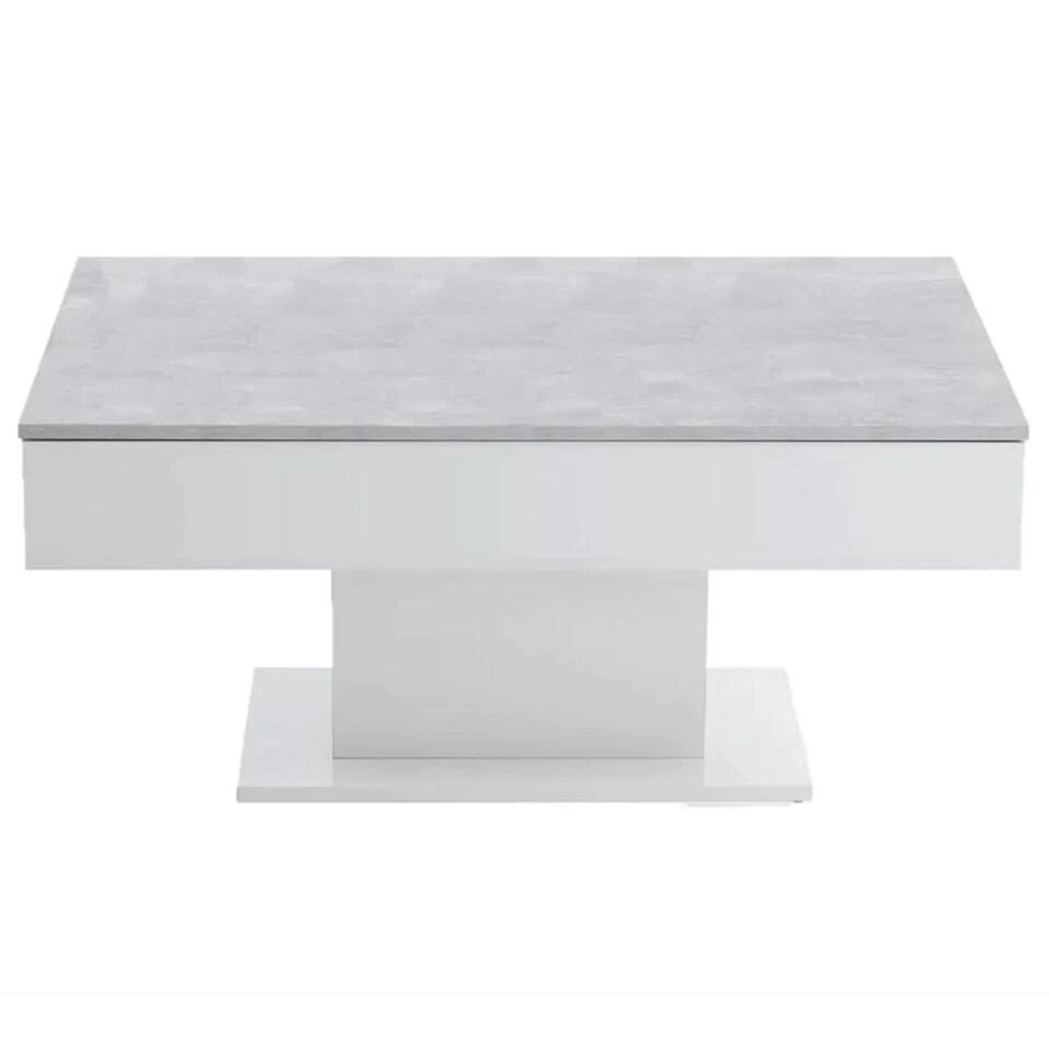 Deze woonkamertafel is gemaakt van duurzaam, met melamine bedekt spaanplaat en heeft een verfijnde betongrijze kleur met witte elementen die bij elke interieurstijl past.