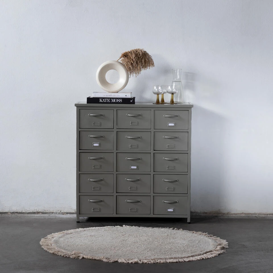 Ben je op zoek naar een industrieel meubel? Dan is Ladekast Industrieel 15 Laden misschien iets voor jou! De ladenkast is gemaakt van staal wat zorgt voor een stoer uiterlijk. Door de grote hoeveelheid lades kun je jouw spullen gemakkelijk sorteren. Of je deze ladenkast nu in jouw hal neerzet of in jouw woonkamer, Ladenkast Industrieel komt overal goed tot zijn recht. De ladenkast is 88cm breed en heeft genoeg ruimte om verschillende spullen op te bergen. De binnenmaat van de laden zijn 24cm breed, 32cm diep en 13cm hoog. Ladenkast Industrieel is ook verkrijgbaar in de kleuren zwart, wit, metal en taupe. Onze kasten bestaan uit één geheel en zijn daardoor geen bouwpakket. De kasten zijn gemaakt van massief staal waardoor de kwaliteit en de levensduur gewaarborgd is. Het enige wat je hoeft te doen is de kast uitpakken en op de gewenste plek neerzetten. Je kunt gemakkelijk en snel genieten van je Giga kast!