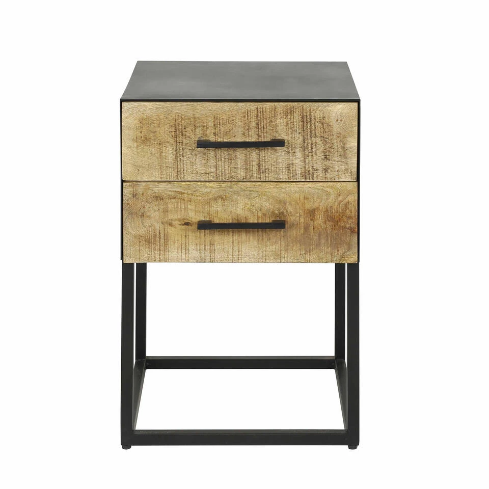 Hoyz – Nachtkastje Metal Wood – Massief Mangohout – Antiek Finish – 40x40x60