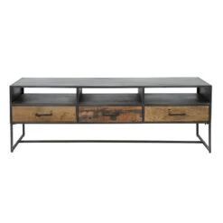 Het frame van het industriële TV-meubel is gemaakt van metaal met een gun metal finish. Dit draagt ook bij aan de vintage stijl. De handvaten van de lades zijn ook gemaakt van metaal en dragen bij aan de industriële stijl.