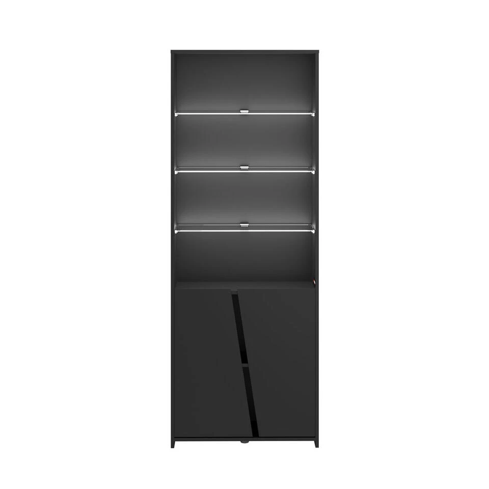 Kast Levi is ideaal voor op de slaapkamer. Deze zwarte wandkast heeft de afmetingen 180x67x28 cm en bevat LED verlichting. Met kast Levi heb je genoeg opslag ruimte voor bijvoorbeeld boeken of andere accessoires.