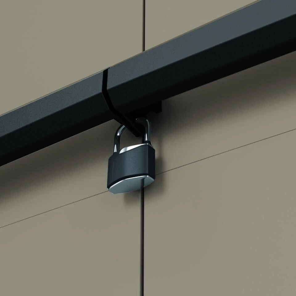 Ook is deze opbergkast voorzien van een ergonomisch ontworpen handgrepen en een hangslot-voorziening.