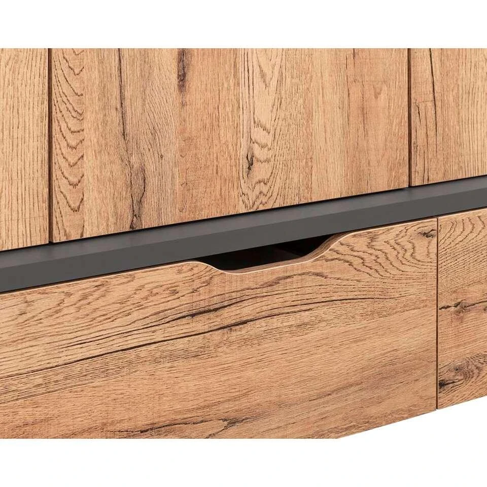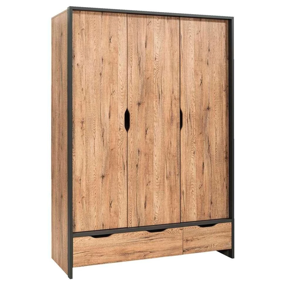 Kledingkast Harvey is een ruime linnenkast, gemaakt van 22 mm dik spaanplaat. De kast is uitgevoerd in eikenkleur/antraciet en heeft drie draaideuren en drie lades. Deze kast is niet alleen functioneel, maar ook nog eens bijzonder leuk om te zien. Door de greep loze strakke afwerking krijgt de kast een moderne en stoere uitstraling. De linnenkast wordt geleverd met legplanken en een roede. Zo heb jij genoeg ruimte voor het het leggen en hangen van kleding. De kast heeft een totale afmeting van 193x141x58 cm (hxbxd). De kast heeft softclosing op de deuren op een nette, niet zichtbare, manier verwerkt in de scharnieren.