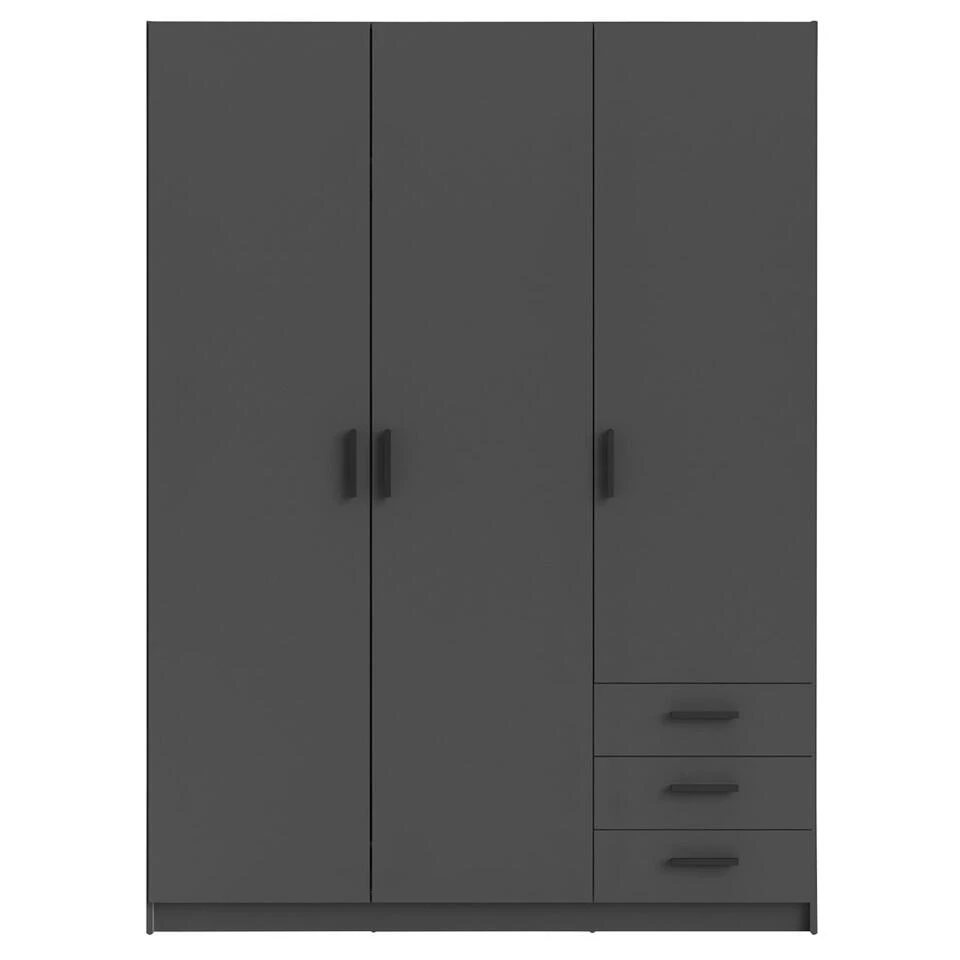 Deze antracietkleurige kledingkast past uitstekend in moderne interieurs.