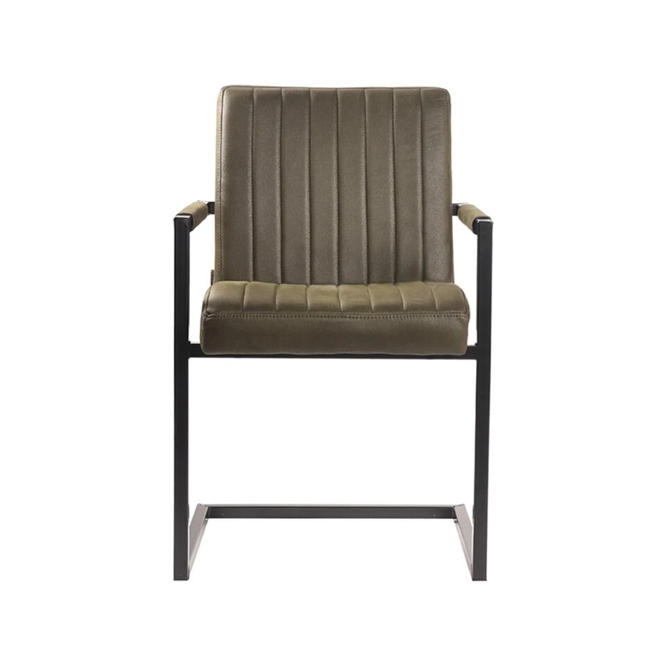 Eetkamerstoel Milo van LABEL51 is een stoere, trendy en zeer comfortabele eetkamerstoel uitgevoerd in de kleur army microvezel. De prettige zit wordt mogelijk gemaakt door de fijn gevormde zitting en de armleuningen die ervoor zorgen dat een lange avond tafelen een feestje wordt!