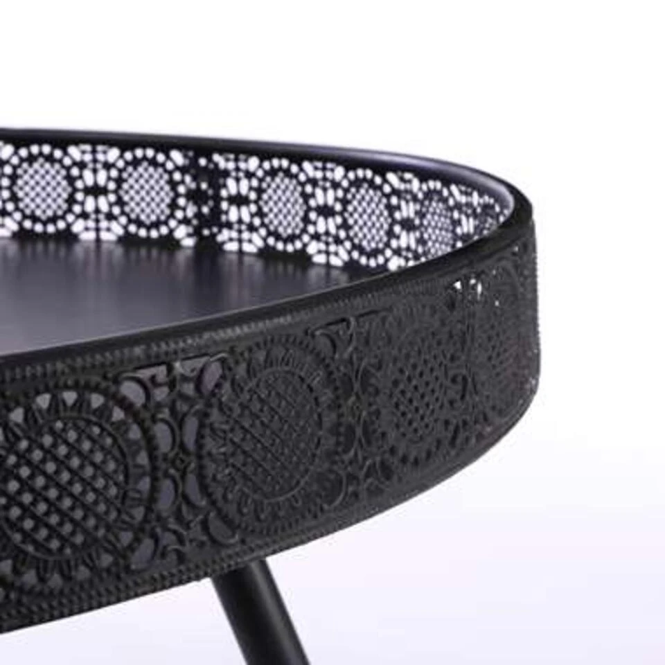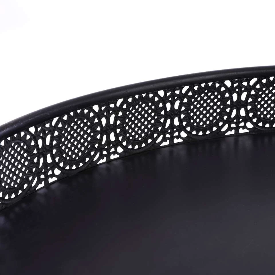 Laat je verleiden door deze prachtige bohemien bijzettafel van Mica Decorations. Het Lagune tafeltje is gemaakt van stevig metaal en heeft een zwarte kleur. In de hoog opstaande rand is een romantisch patroon verwerkt, wat de tafel een unieke uitstraling geeft. Tegelijkertijd is het een extra beveiliging voor alles wat je erop zet. Bijvoorbeeld een drankje of een goed boek. Gebruik hem als bijzettafel, salontafel, plantentafel of decoratietafel. De afmetingen zijn H45,5 x Ø70 cm.