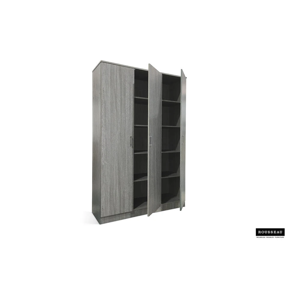 Rousseau Opbergkast Ray 120cm Met 3 Deuren En 4 Legplanken – Grijze Eik