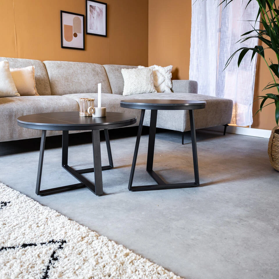 Salontafel set Tanner is een stoere salontafel set met een elegant marmerlook blad. Ook bevat deze stoere salontafel een bijzonder onderstel. Salontafel set Tanner is dan ook zeker een prachtige eyecatcher in jouw woonkamer. Deze salontafel marmerlook is stijlvol, bijzonder én zeer stevig. Het blad van de salontafel set is namelijk gemaakt van het stevige materiaal sintered stone en bevat een sfeervol patroon.