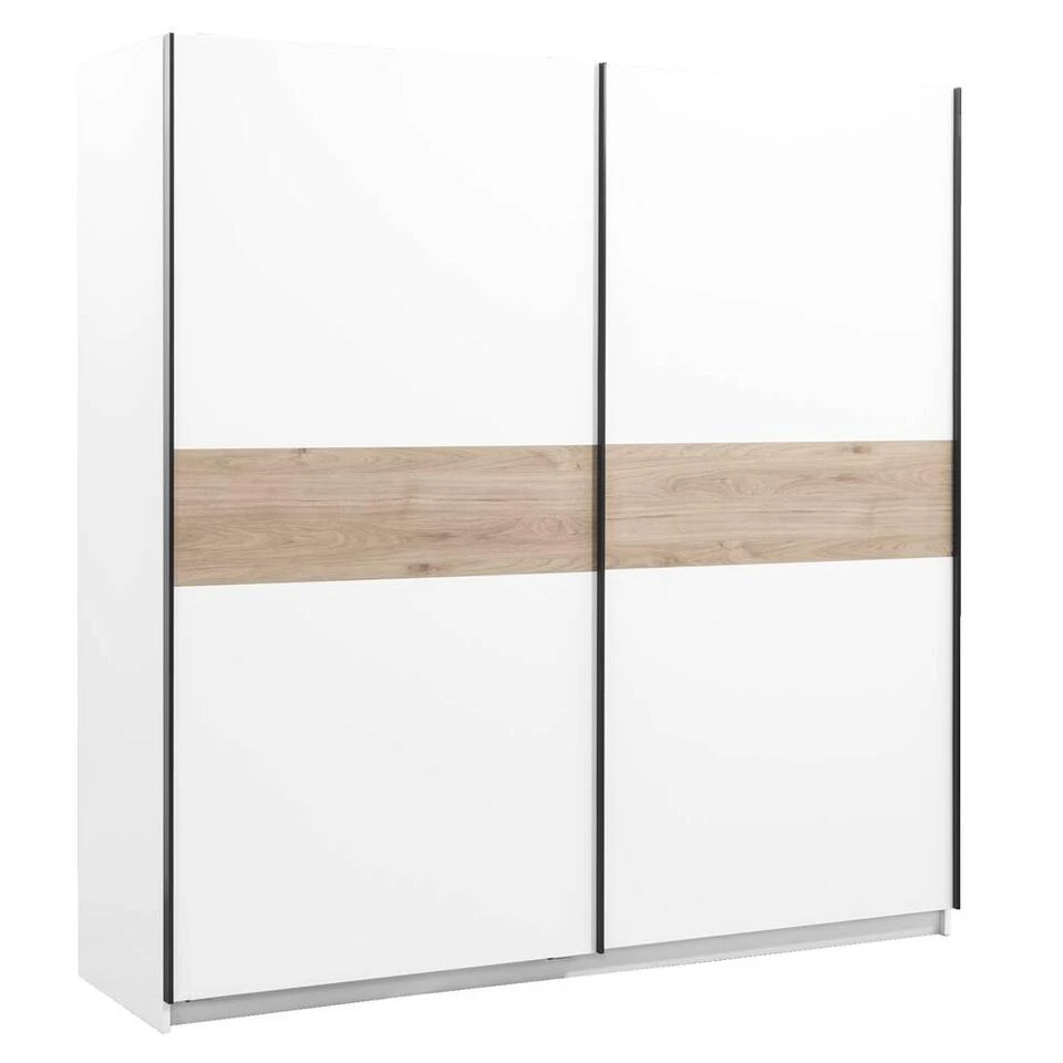 Schuifdeurkast Genua is een echte eyecatcher in de slaapkamer en biedt voldoende ruimte voor al je kleding, schoenen en accessoires. De Genua kledingkast is zelf samen te stellen in diverse combinaties en biedt daardoor vele mogelijkheden. De kast is standaard uitgerust met 2 kledingroedes en 2 legplanken. Daarbij kan deze kast worden uitgebreid met extra bijbehorende legplanken en een ladeblok, welke apart verkrijgbaar zijn. De schuifdeurkast heeft een moderne, strakke uitstraling en past door de verschillende combinaties gemakkelijk in ieder interieur.