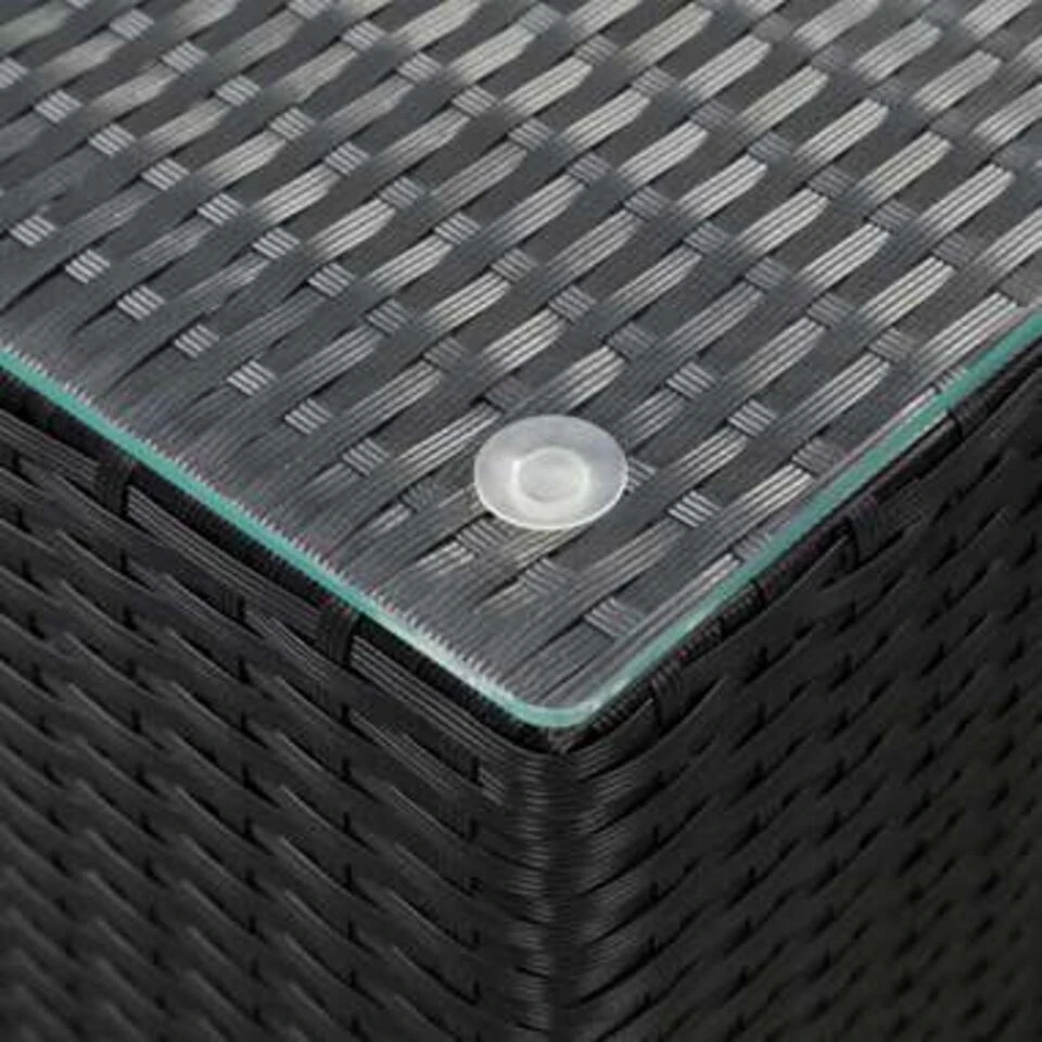 Deze bijzettafel is gemaakt van weerbestendig poly rattan, een metalen frame en een glazen tafelblad, waardoor hij slijtvast is en dagelijks kan worden gebruikt. Dankzij de lichtgewicht constructie is hij gemakkelijk te verplaatsen. Bovendien kan de accenttafel dienen als salontafel, theetafel, enz. Hij is gemakkelijk schoon te maken met een vochtige doek.