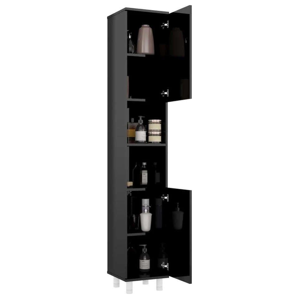 Deze chique kast is gemaakt van spaanplaat, waardoor hij stevig en stabiel is. De kast heeft 6 vakken en 2 deuren en biedt verschillende opbergmogelijkheden en extra ruimte om spullen in je badkamer op te bergen. Elke deur heeft een handvat voor gemakkelijk openen en sluiten. De kast is gemakkelijk schoon te maken met een vochtige doek.