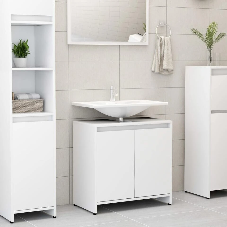 Deze chique kast is gemaakt van spaanplaat, waardoor hij stevig en stabiel is. De kast heeft 1 vak en 2 deuren en biedt ruimte om spullen in je badkamer op te bergen. De kast is gemakkelijk schoon te maken met een vochtige doek.