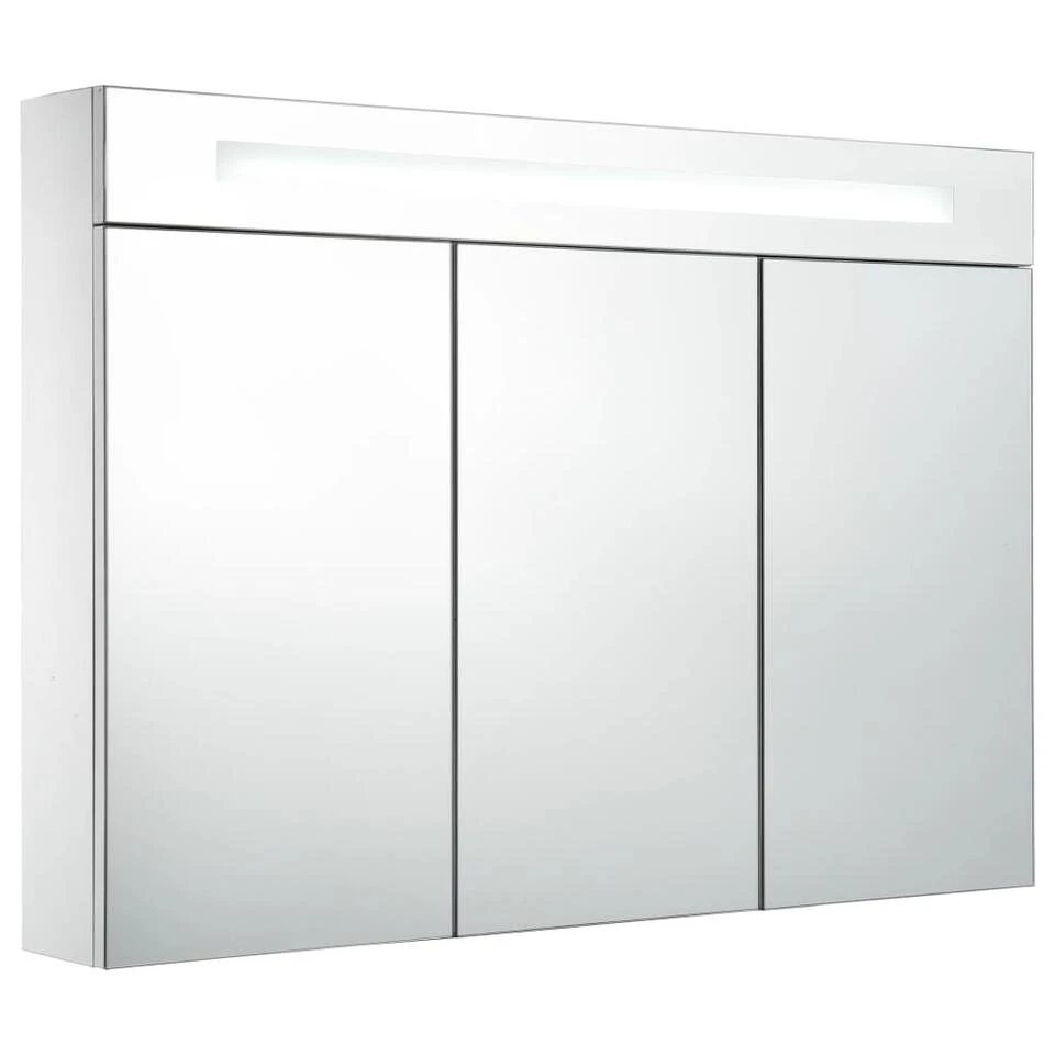 Het kastje is gemaakt van hoogwaardig MDF met melamine-afwerking, waardoor het zeer duurzaam is. De bovenkant heeft een geïntegreerde LED-lichtstrip waardoor er genoeg licht is om jezelf op te maken en je huid te verzorgen. Hij verlicht zowel de ruimte als jou. Je schakelt het licht eenvoudig in/uit met de onderste knop. Het kastje heeft 3 deuren en 5 schappen, voor extra opbergruimte in de badkamer. Ze bieden gemakkelijk plaats aan je essentiële toiletartikelen en badproducten, zoals zeep, shampoo, tandpasta, enz. Het kastje is stijlvol en functioneel, en is een blikvanger in elke ruimte!