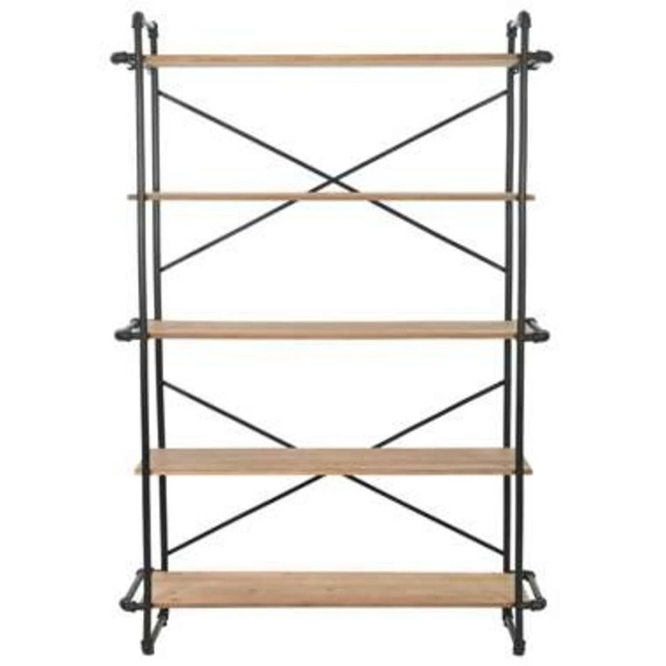 Het staande schap is gemaakt van een stevig stalen frame en massief vurenhouten planken en is zeer robuust en duurzaam. De boekenkast heeft 5 schappen die voldoende ruimte bieden voor het opbergen en weergeven van je boekencollectie, dvd’s, mappen en andere, decoratieve spullen. De gekruiste stalen achterstructuren dragen bij aan de industriële stijl van de boekenplank.