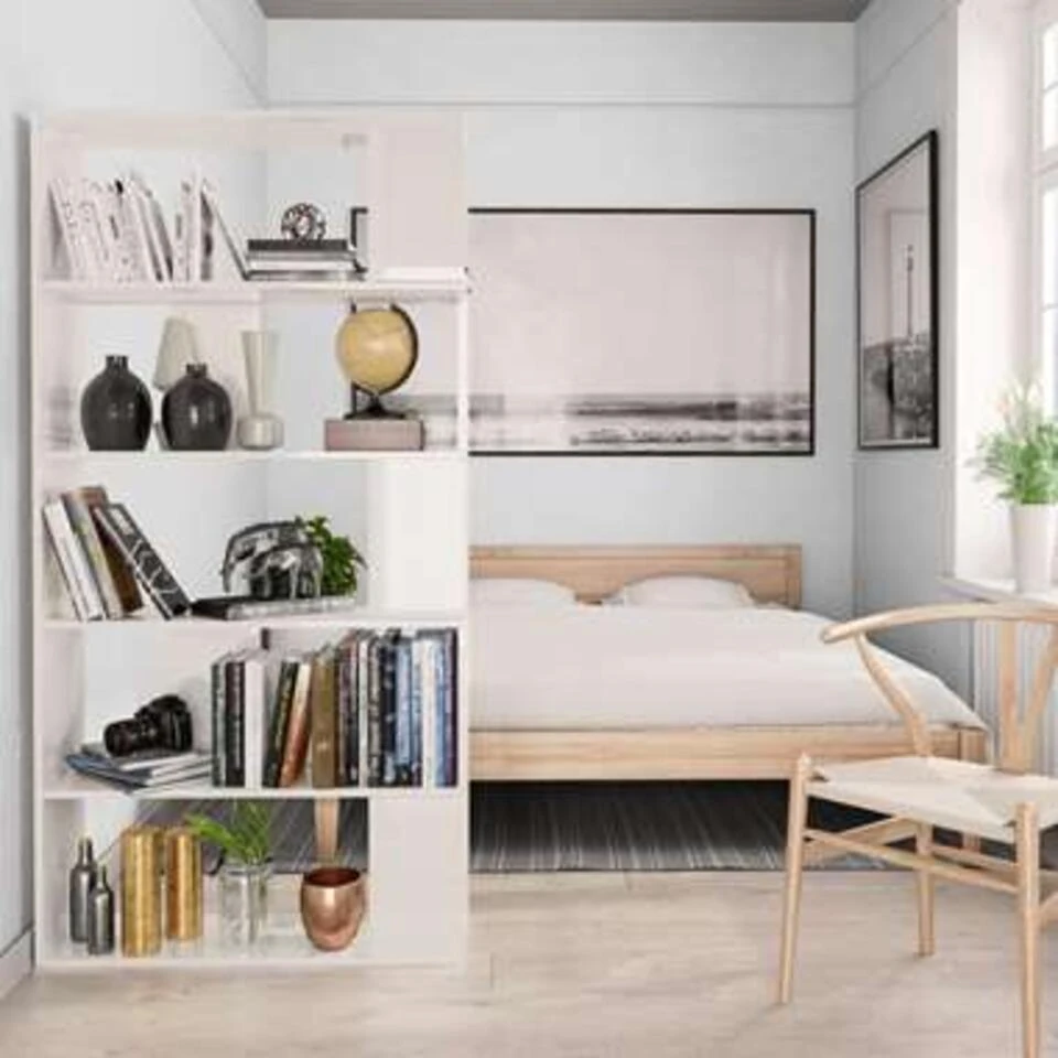 De kast is gemaakt van bewerkt hout waardoor hij stevig en duurzaam is. De boekenkast heeft 5 ruime vakken en biedt voldoende ruimte om tijdschriften, boeken, dvd’s, multimedia-apparaten en decoratieve spullen goed georganiseerd en binnen handbereik te houden. Het meubel is zeer veelzijdig, omdat het ook als kamerscherm gebruikt kan worden. Het is geschikt voor in je gang of andere woonruimte.