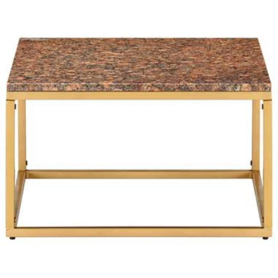 - Materiaal: echt steen met marmeren textuur en messingkleurig gepoedercoat ijzer