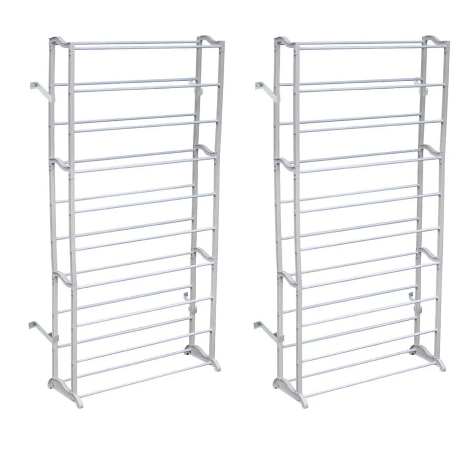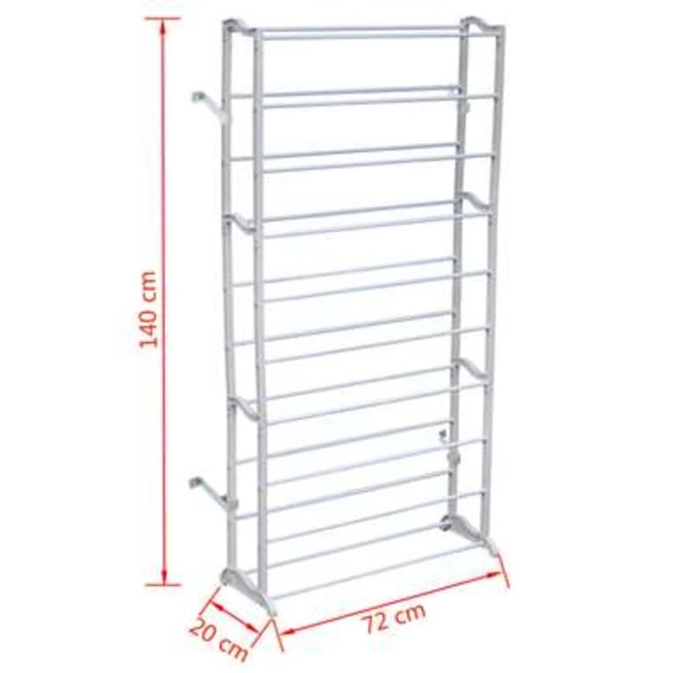Deze schoenenrekken zijn gemaakt van wit kunststof met metalen balkjes en zijn geschikt voor 40 paar schoenen. Er zijn 10 ‘verdiepingen’ om alle schoenen te ordenen. Ze hebben een compact formaat met kleine tussenwanden. De schoenenrekken kunnen eenvoudig gemonteerd worden zonder gereedschap.