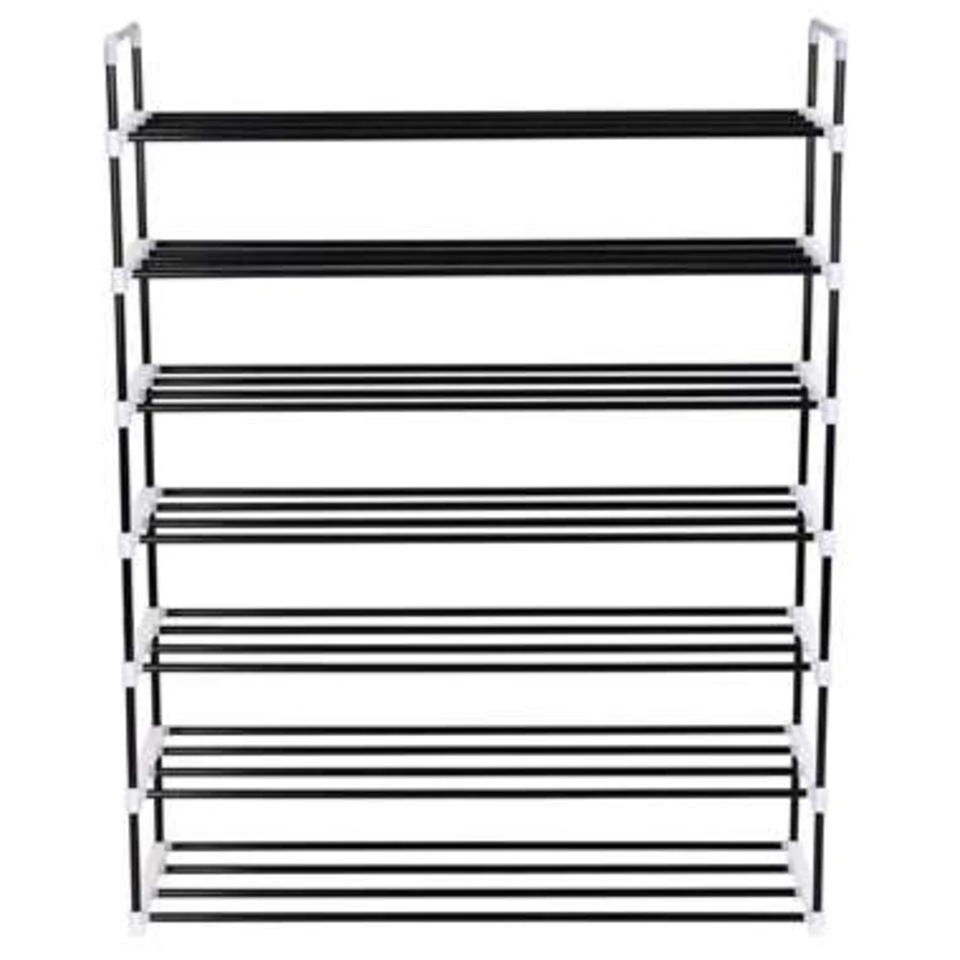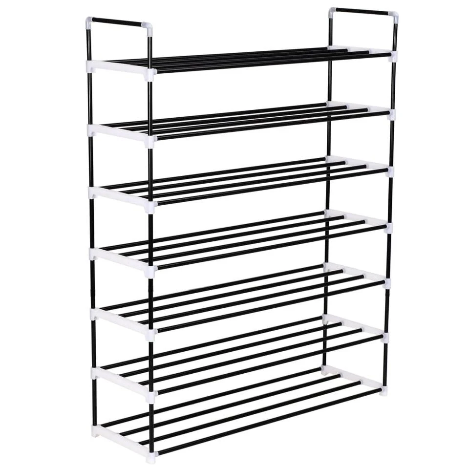 Het heeft een buisvormig, metalen frame dat lichtgewicht maar toch stevig is, waardoor het schoenenrek gemakkelijk te verplaatsen en vrij duurzaam is. Het heeft 7 royale schappen met voldoende ruimte om je schoenen geordend en opgeborgen te houden.