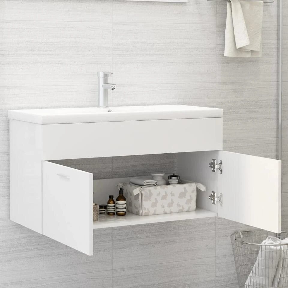 Met deze gootsteenkast kan je extra opbergruimte in je badkamer creëren. Door de strakke lijnen en het strakke ontwerp past hij perfect in je badkamer.