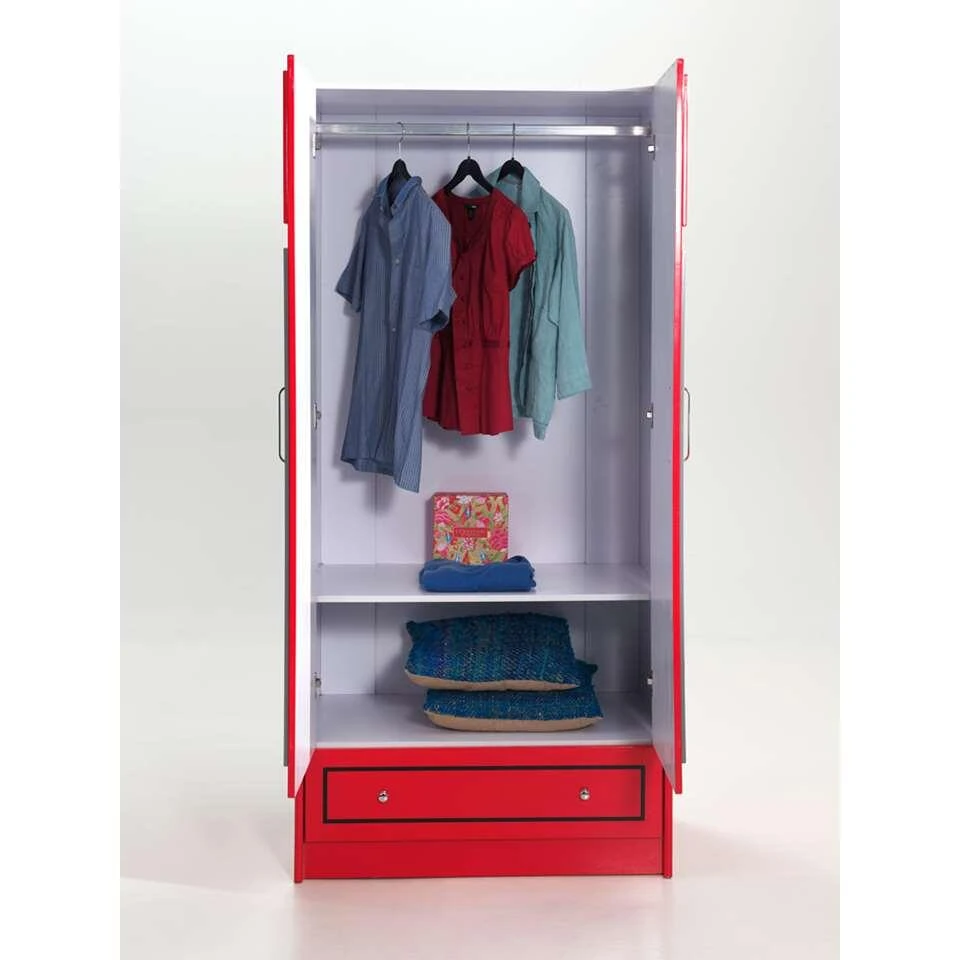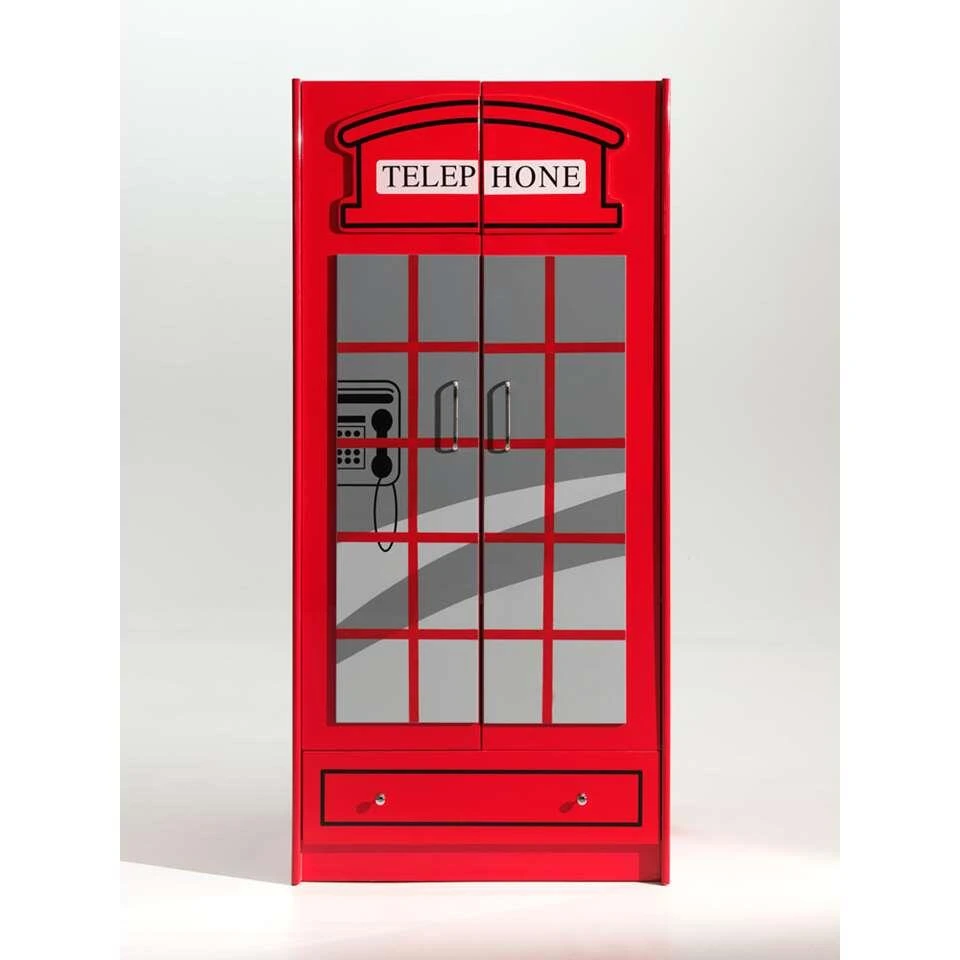 Vipack 2-deurs kledingkast London is een ouderwetse telefooncel waarin je kleding op kunt bergen. Deze kledingkast uit de Fun-collectie is volledig vervaardigd uit hoogwaardige MDF. De kinderkamerkast is rood gelakt met herkenbare accenten voor de Londense phonebooth. Deze kast heeft 2 deuren en 1 lade. De binnenkant van de kast beschikt over een grote roede en een legplank. Deze kast is onderdeel van de London Bus.